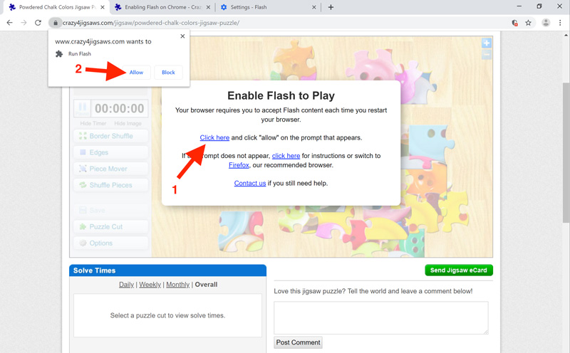 4. Go back to the puzzle, click the enable Flash link, then click "allow".